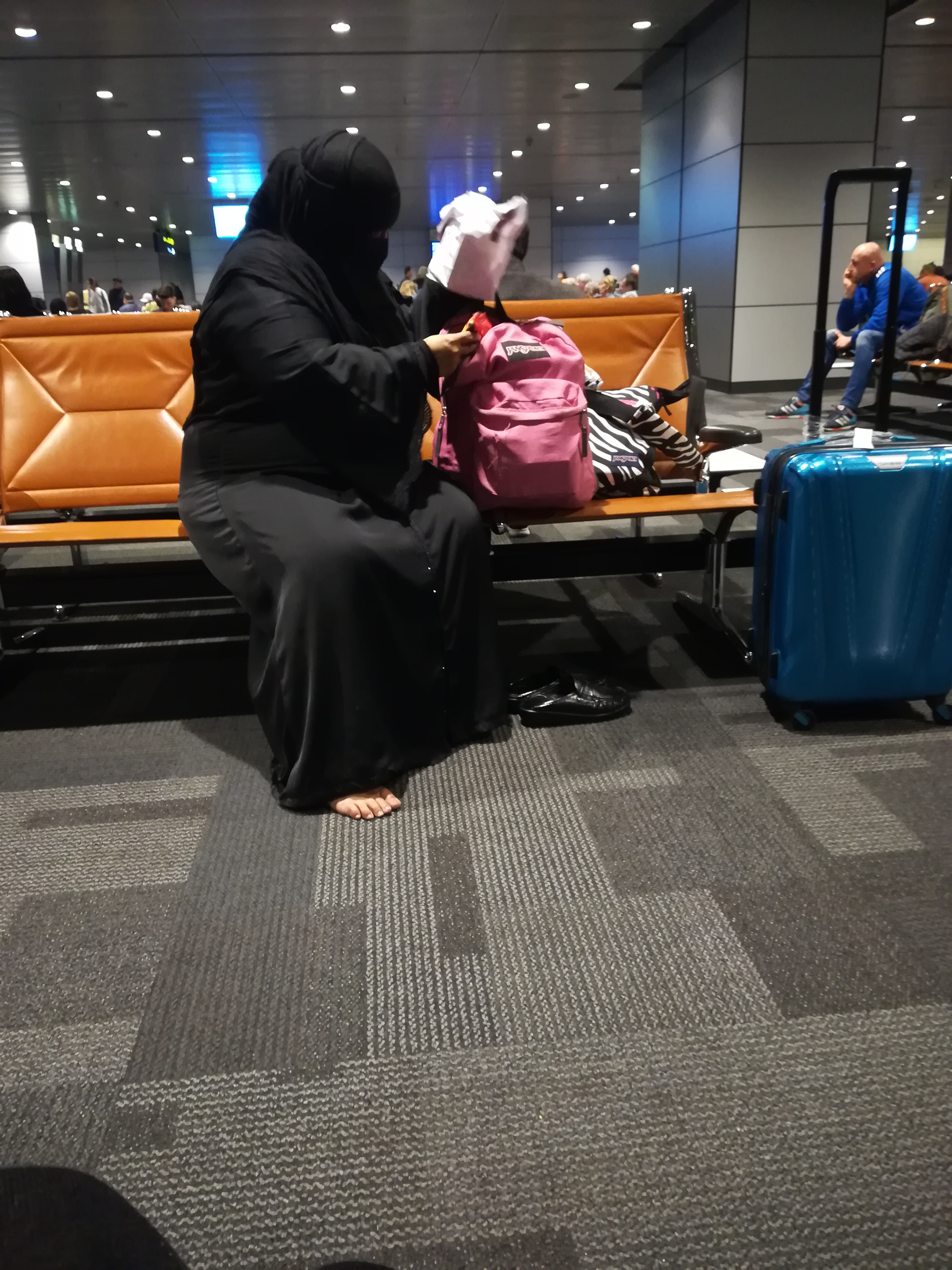 Procede tutto regolare. Incrociamo le hostess del nostro volo, con i loro trolley e quell’aspetto curatissimo. Sono sempre un bel vedere. L’aereo è pulito, spazioso e, soprattutto, in perfetto orario. Nonostante viaggiamo abbastanza spesso, il beneficio di dormire in aereo non ci è ancora concesso, perciò la lista dei film diventa assai importante. Ne trovo un paio che volevo vedere già da un po’. Molto spesso la lingua italiana non è contemplata nella lista delle lingue disponibili, ma fa niente, cominciamo ad esercitare un po’ di inglese. Così, tra il pranzo, peraltro buono, con insalata di riso, spezzatino con patate, un buon dolce e un buon film, la prima tratta passa. Il primo impatto con un aeroporto arabo è buono. Tutto come immaginavo, molto ordinato e pulito. L’unica cosa a cui non avevo pensato è lo scontro con il burqa. Non il velo, ma il burqa. In sala d’attesa c’è una donna seduta di fronte a me. Una fessura di 2 cm di altezza per gli occhi è l’unica apertura che vedo. Sta mangiando scostandosi il velo dalla bocca ma quando arriva Miro smette di mangiare per non far intravedere neanche quel poco che poteva apparire. Vado in bagno e accanto vedo la stanza per le preghiere. Neanche a questo avevo pensato. Mi rendo conto che qui comincia il mio viaggio tra le culture e le religioni del mondo.
