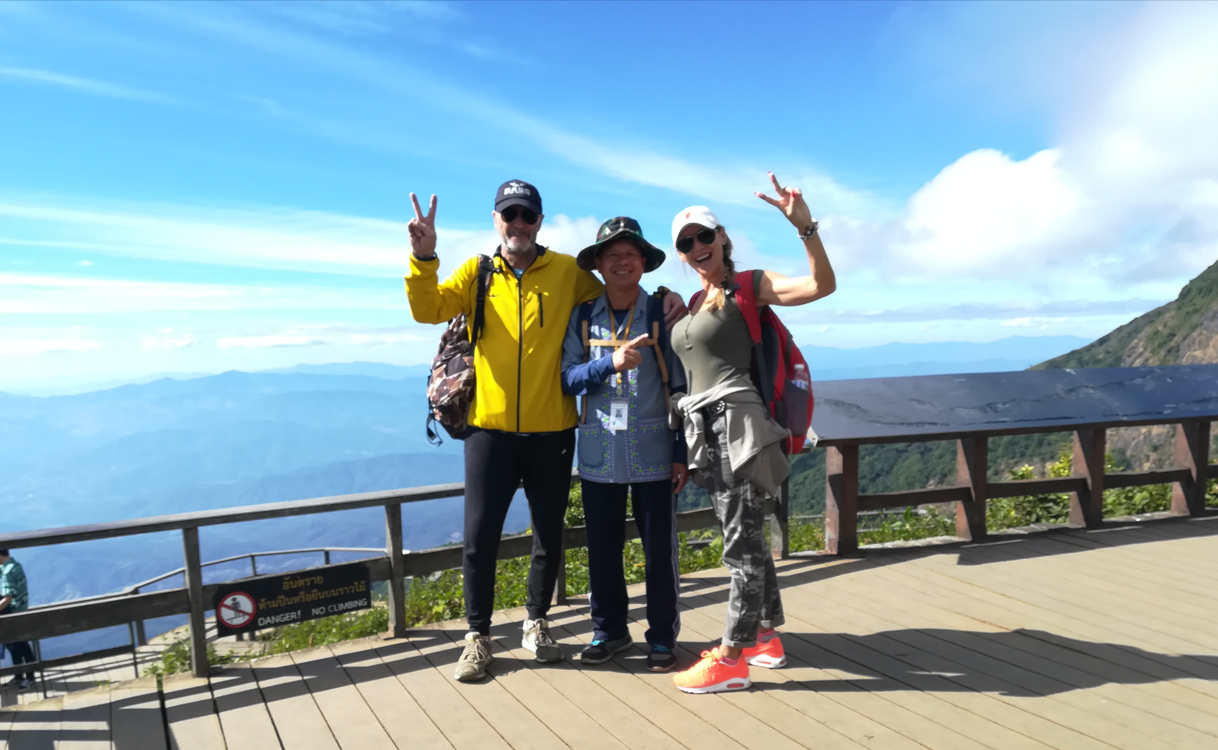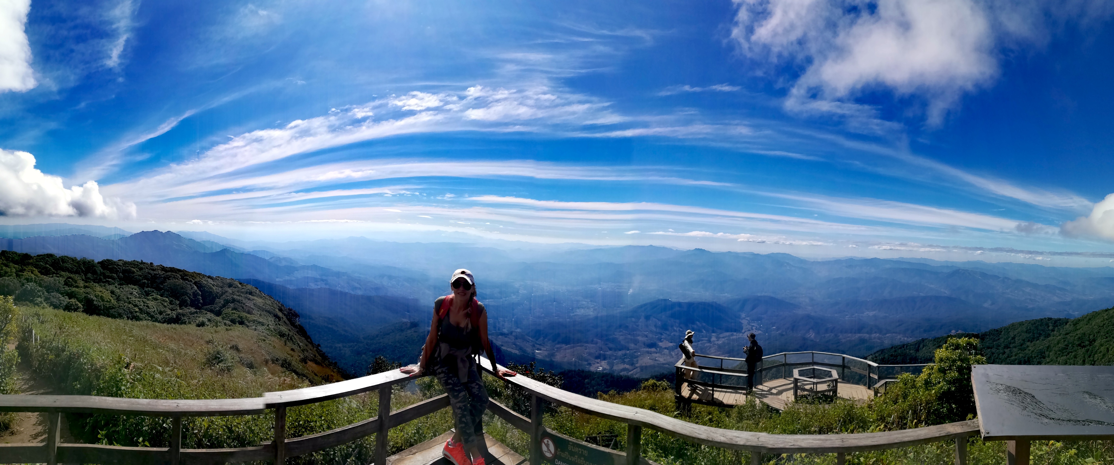 Vogliamo raggiungere il Doi Inthanon National Park. Il solo fatto di essere situato a 800 metri, nella vetta più alta della Thailandia è una ragione sufficiente per andarci. Se poi ci si aggiunge che è sede di innumerevoli cascate, di remoti villaggi rurali, di una varietà incredibile di flora e fauna e di due bellissimi templi, direi che le ragioni sono più che sufficienti. È a circa 2 ore di strada da Chiang Mai ma ciò non ci scoraggia perché la meta non è la sola cosa importante, lo è anche il tragitto per arrivarci, alla scoperta del nuovo paese in cui ci troviamo. Saranno circa 25-28 gradi, temperatura ideale per assaporare questa gita. Lungo la strada ci sono piccoli market e bancarelle ovunque, ci fermiamo in un posto sperduto per chiedere informazioni e troviamo pure il caffè con i grani appena macinati e il wi-fi. Testardamente, non ho voluto prendere una scheda telefonica tailandese così non ho navigatore, non ho google maps, niente di niente e, perciò, come accade sempre, sbagliamo strada. La signorina dei grani macinati ci dà le giuste indicazioni e dopo qualche buon chilometro la meta ci appare. Oltre a visitare i templi, la nostra idea era quella di fare una lunga passeggiata nella foresta. Troviamo subito un sentiero che però risulta essere molto breve, anche se ci dà già un’idea di com’è la foresta tailandese, fitta, rigogliosa, viva, rumorosa ma del rumore buono fatto di versi di animali che mai prima avevamo sentito. Ci spostiamo più in basso verso l’entrata dei templi e lì troviamo un altro sentiero che si può fare solo con la guida. Calcolando che non abbiamo molto tempo perché ci attendono circa 100 km per tornare in città, spieghiamo che abbiamo solo un’ora e il capo delle guide si prodiga per affidarcene una ripetendogli più volte “one hour, one hour”. La nostra guida è un signore piccolo e magro che non parla inglese ma viaggia come un missile. Il sentiero parte subito in salita e noi, complici forse l’altitudine e il caldo, per un attimo rimaniamo senza fiato. Ogni tanto appare qualche panchina in legno e il nostro caro capocordata ci chiede se vogliamo riposarci. Ma noi, dopo il primo momento di smarrimento, ci sentiamo bene e non ne vogliamo proprio saperne di fermarci. È proprio tutto come me l’aspettavo, alberi e foglie gigantesche, rami che si intrecciano formando disegni fantasiosi, ruscelli attraversati da ponti naturali fatti dalle piante, canti e fischi di uccelli e insetti invisibili. La foresta si fa meno fitta ed usciamo su una radura che ci offre una visione incredibile della montagna in tutta la sua bellezza e interezza. Abbiamo una visione a 360 gradi e ciò che vediamo toglie il fiato. Verde e verde ovunque e dove finisce il verde inizia l’azzurro del cielo. Ad un certo punto il nostro accompagnatore fa una deviazione dal sentiero principale e quello che ci troviamo davanti proprio non ce l’aspettavamo. Vediamo in lontananza i due templi buddisti, una visione davvero suggestiva sia per la loro bellezza che per i colori dei giardini che li circondano. One hour è passata e torniamo verso il motorino ringraziando la simpaticissima guida guardata con invidia dai suoi colleghi che si sono accorti della nostra mancia.