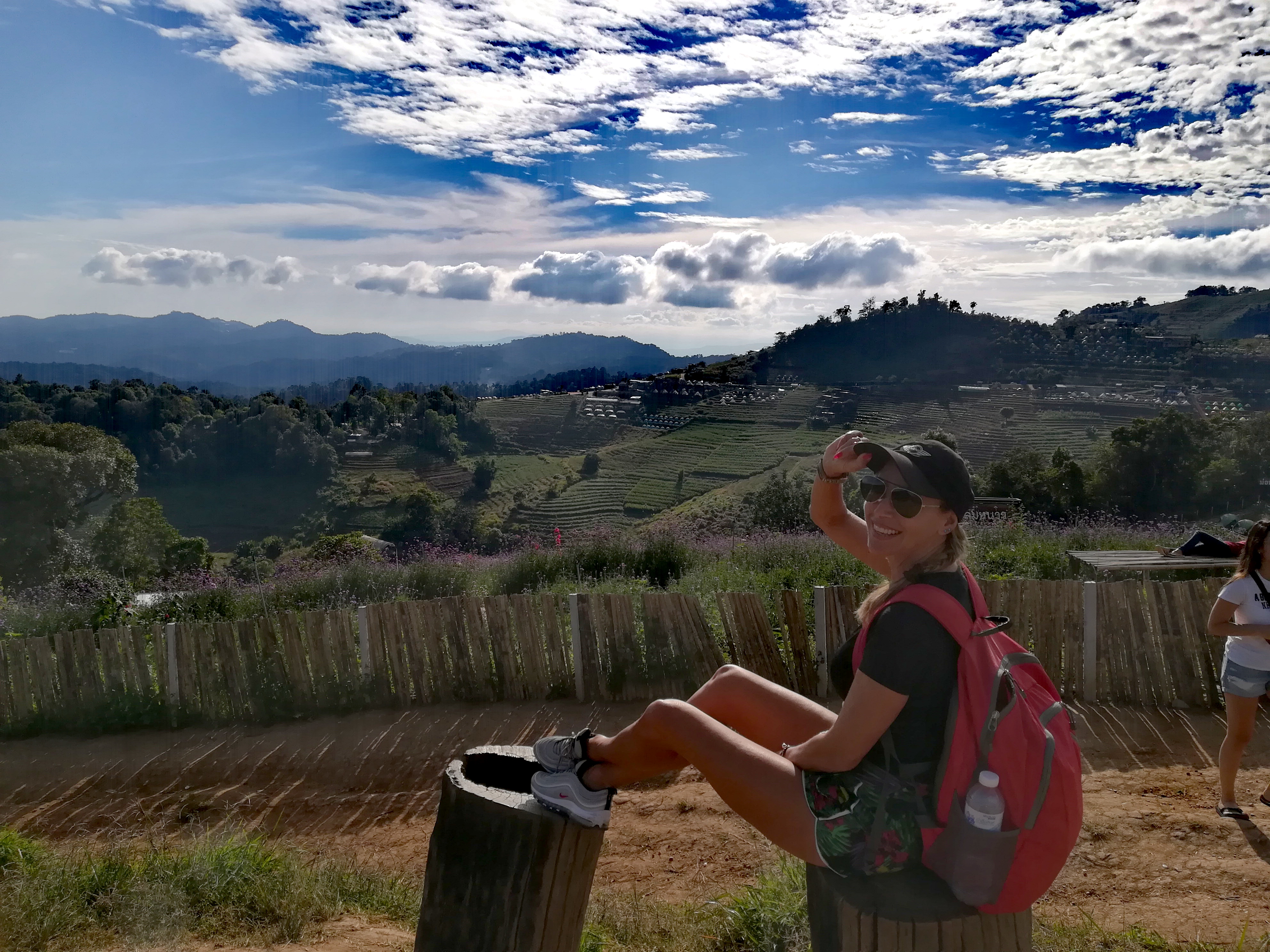 Arriviamo all’hotel molto presto e la camera non è pronta ma Gavin, il titolare, un inglese assai gentile, ci offre la colazione. Ci sarebbero parecchie cose buone ma abbiamo solo voglia di frutta, l’aereo e il viaggio scombussolano sempre un po’. Il proprietario dell’albergo ci dà subito la mappa con qualche dritta per i giorni futuri. La parte storica della città non è grandissima ed è abbastanza semplice da girare perché è circondata da un canale e da 4 porte antiche poste ad ogni punto cardinale. Curiosissimi di scoprirla ci incamminiamo immediatamente per le sue vie. Appare già molto viva, motorini che sfrecciano, automobili, taxi, negozietti e bancarelle sono già quasi tutti attivi. In Thailandia c’è la guida a destra e perciò dobbiamo abituarci subito a guardare dalla parte giusta prima di attraversare…non mi abituerò mai…Miro mi salva infinite volte dall’essere travolta da qualche mezzo in arrivo. Pensando già di spostarci a Chiang Rai in bus, troviamo un’agenzia dove prenotiamo i biglietti. Le città tailandesi pullulano di queste agenzie dove si possono trovare biglietti di ogni genere, dai voli, ai battelli, agli spettacoli, alle attrazioni. Si riesce a contrattare qualsiasi prezzo e ad organizzarsi perfino i tour personalizzati. Il biglietto del bus ha un prezzo fisso ma per poca differenza scegliamo il bus VIP dove c’è più spazio per le gambe e ti offrono perfino acqua e uno snack. Si rivelerà una scelta giustissima. Percorreremo circa 300 km in assoluta comodità e relax.
