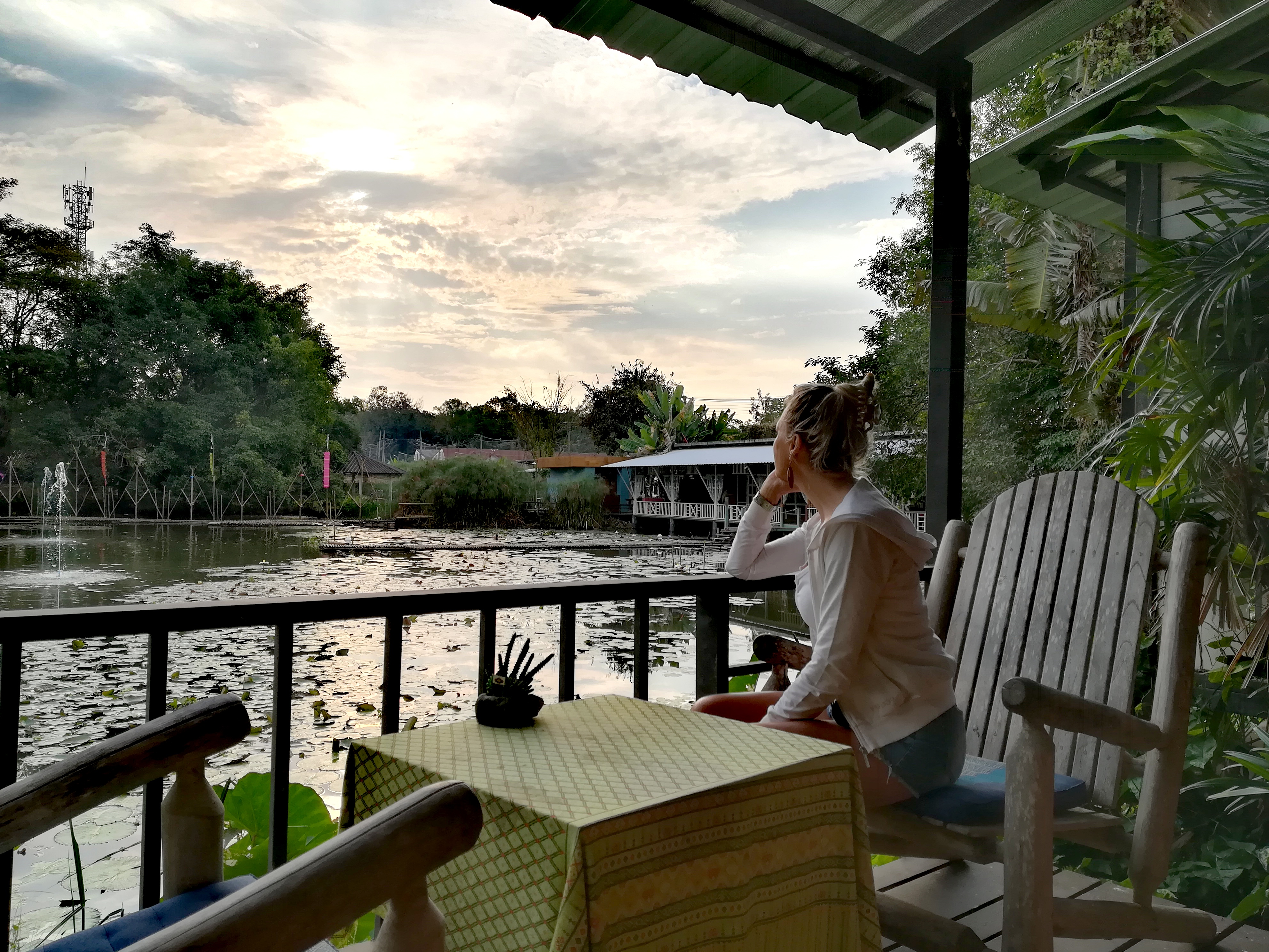 E’ tardi e dobbiamo ritornare prima che faccia buio, siamo in terra straniera e ad una certa ora preferiamo essere vicini al centro. Una delle prime cose che avevamo notato al nostro arrivo a Chiang Mai, è un ristorante vicino al nostro hotel, riccamente decorato sia all’interno che all’esterno con ghirlande e fiocchi rosa e rossi. Ci eravamo ripromessi di andarci e oggi, come ultima sera qui, decidiamo che non possiamo lasciarcelo scappare. Il locale è un tripudio di luci e fiocchi che riprendono i colori dell’esterno e i posti a sedere sono delle sedie a dondolo fatte di legno e bambù. La bontà del cibo rispecchia la bellezza del luogo. Contenti e con la pancia piena ce ne andiamo a preparare le valigie per il giorno dopo, direzione Chiang Rai.