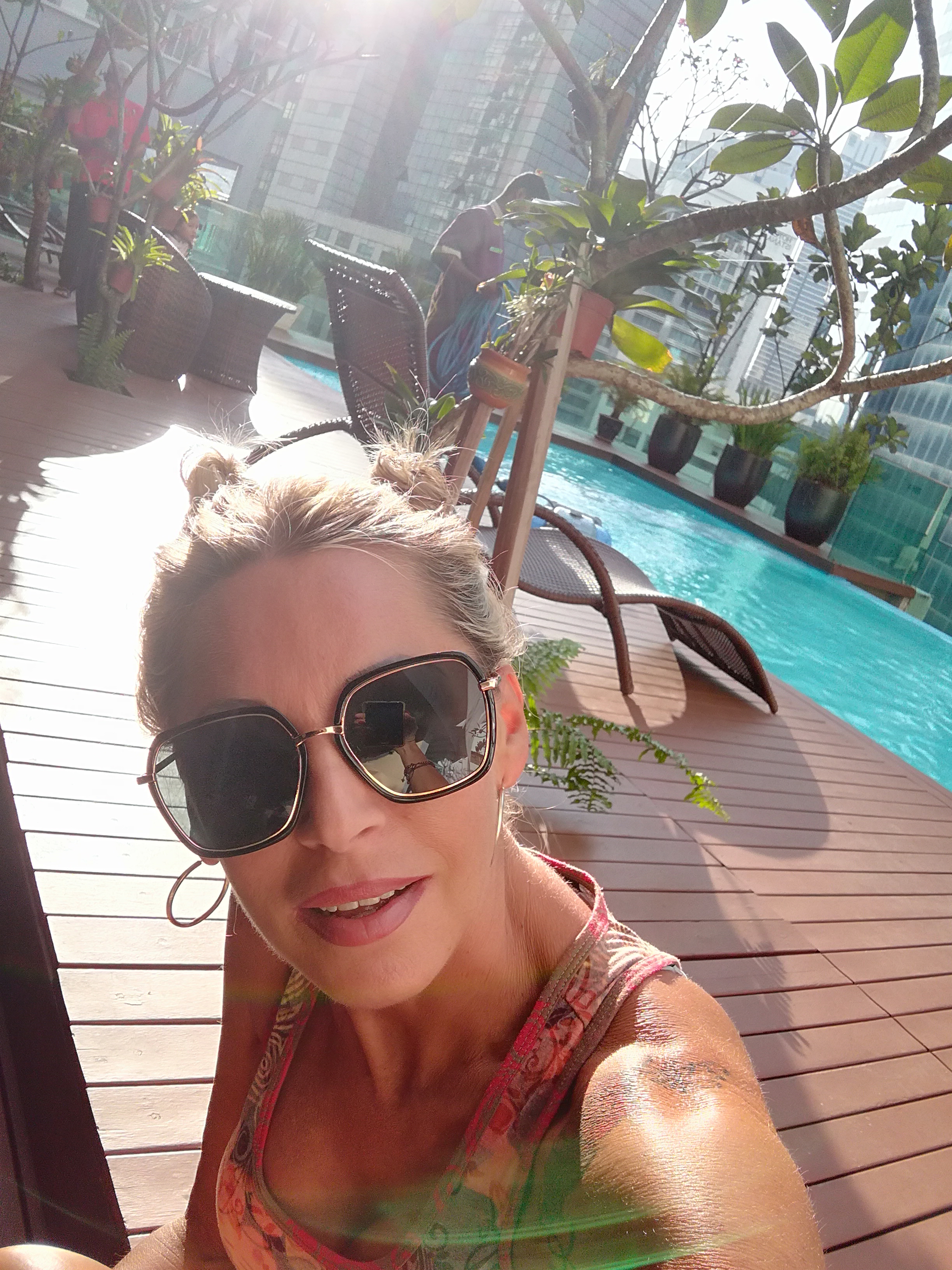 Non abbiamo ancora approfittato della nostra piscina tra i grattacieli e perciò lo facciamo ora.