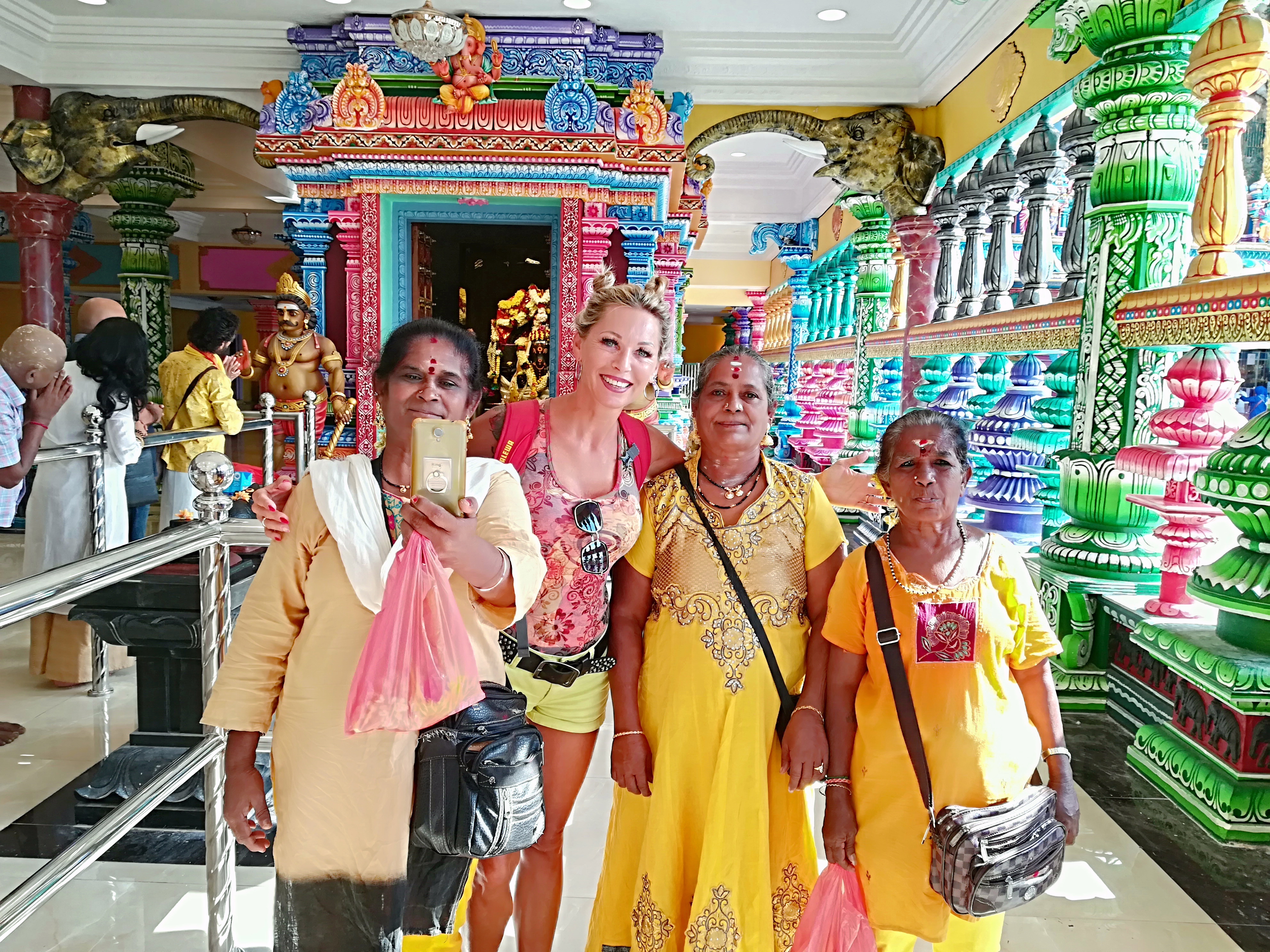 Nonostante moriamo dalla voglia di percorrere questa scalinata, ci soffermiamo a visitare il nostro primo tempio indù che ci conquista immediatamente. È come entrare in un altro mondo, ci si sente improvvisamente catapultati in India in un tripudio di colori e forme che rappresentano divinità, animali ed elementi cosmici. Ogni colore è così vivo e splendente che sembra di entrare in un dipinto e sembra di avvertire la gioia e l’armonia di questa incredibile cultura.