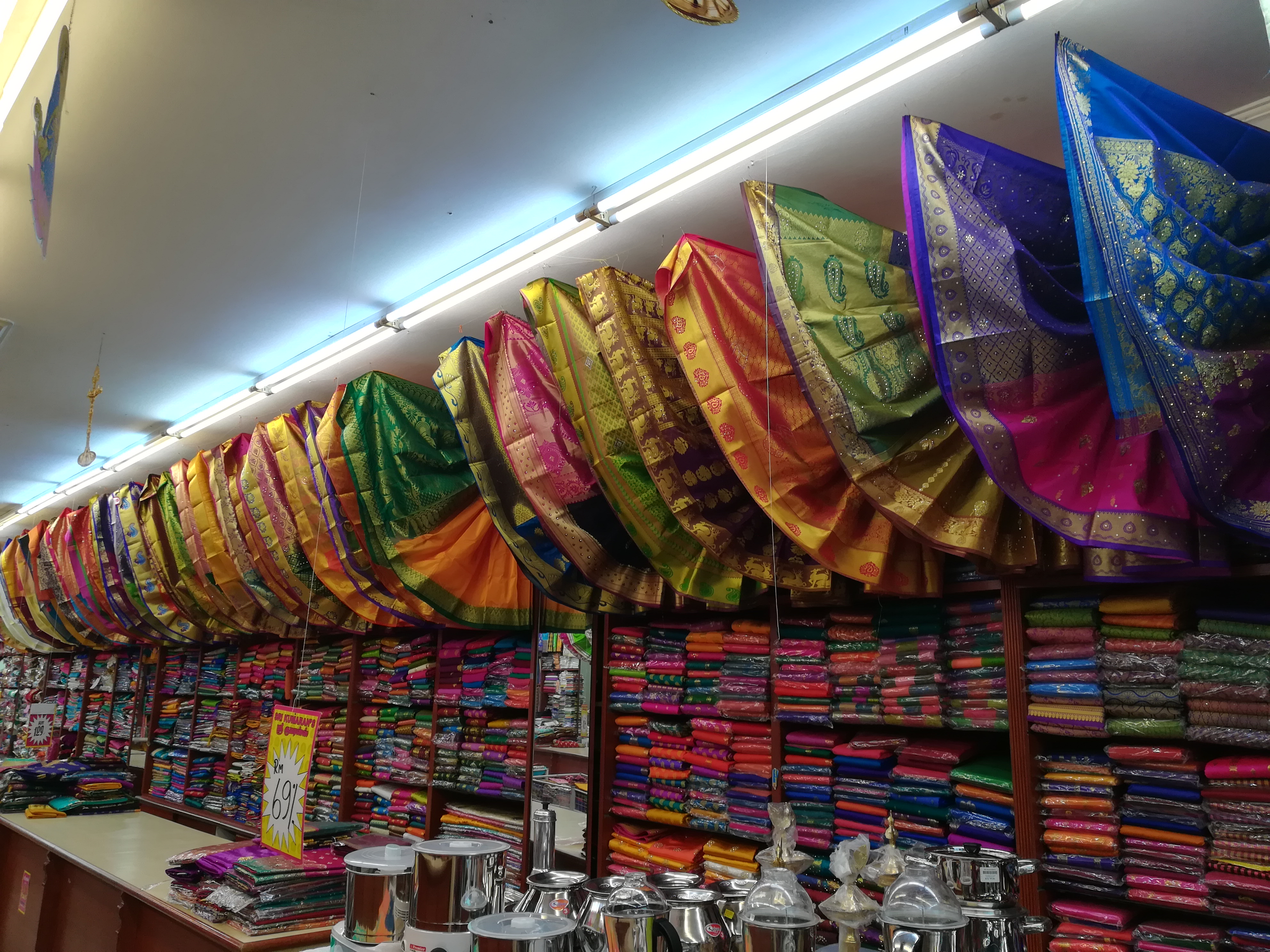 Oggi si torna in patria! Il nostro aereo è nel tardo pomeriggio perciò ci rimane il tempo per un ultimo giro. Durante questo viaggio ci (veramente più io che Miro) siamo appassionati alla cultura indiana e scegliamo di visitare la Little India. Passiamo prima per la stazione centrale per raccogliere qualche informazione per la navetta che va all’aeroporto. Scopriamo che sarebbe più costosa del taxi e perciò, con nostra grande felicità, scegliamo ancora una volta la comodità di Grab. Niente valige da trascinare in giro per stazioni e lunghi corridoi da percorrere con caldo e pesi al seguito ma comodo pick up in albergo con scarico direttamente all’entrata dell’aeroporto. Niente di meglio per finire in bellezza questo nostro lungo viaggio. Il quartiere indiano è poco lontano dalla stazione e lo raggiungiamo a piedi, godendoci quest’ultimo sole e questo caldo ben sapendo che, in Italia, ci aspettano temperature ben diverse. Capiamo subito di essere arrivati perché veniamo accolti da una lunga via piena di musica e colori. I negozi sono un’esplosione di colori. Stoffe, sete, sari, foulard e abiti di incredibile bellezza. Provo a fare qualche acquisto ma difficilmente si riesce a trattare sui prezzi. Del resto, sono capi così belli che pagarli meno sembrerebbe un’ingiustizia.