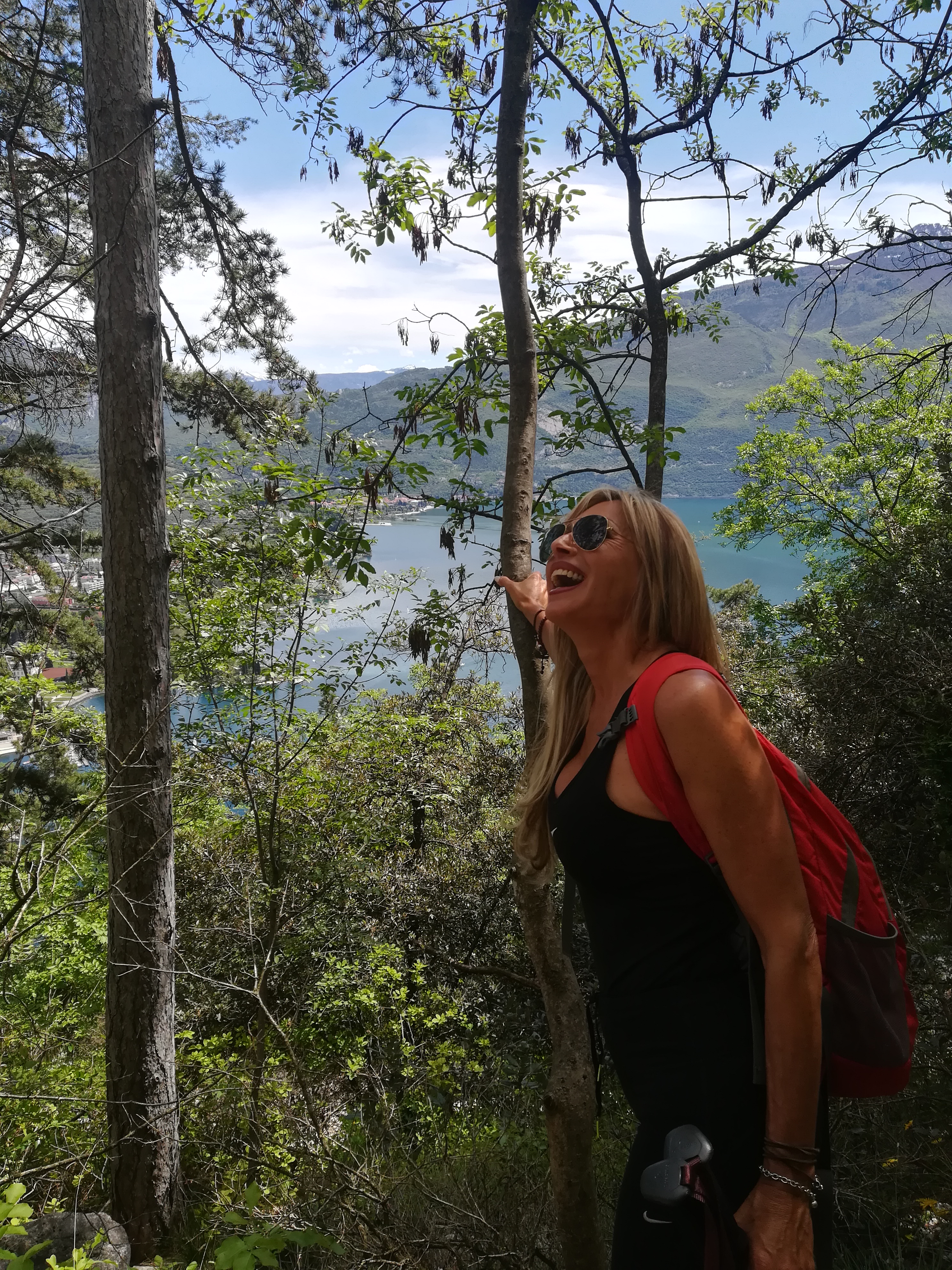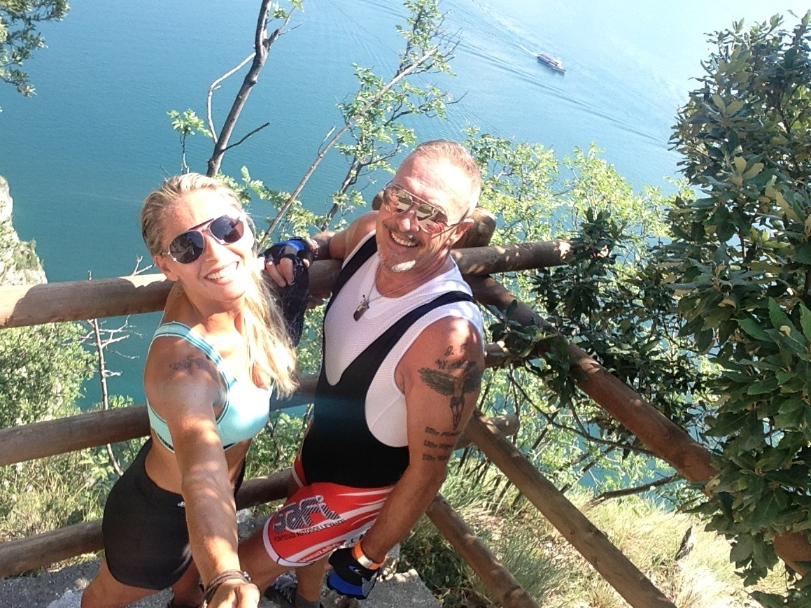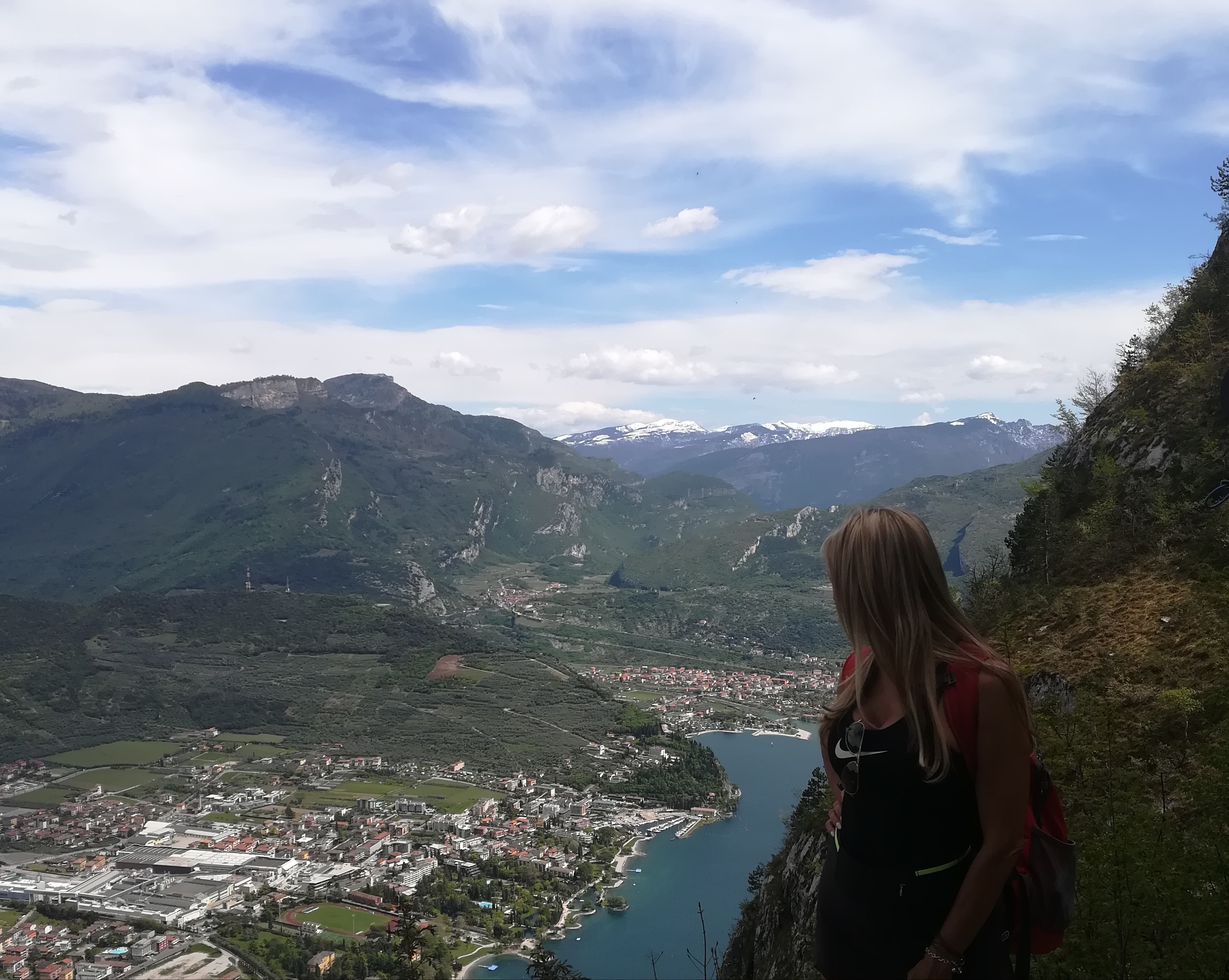 Un tornante dopo l’altro proseguiamo sempre con una discreta fatica data la pendenza del percorso ma non ce ne curiamo perché ad ogni nuova curva c’è la vista spettacolare del lago e di Riva del Garda che ci fa compagnia