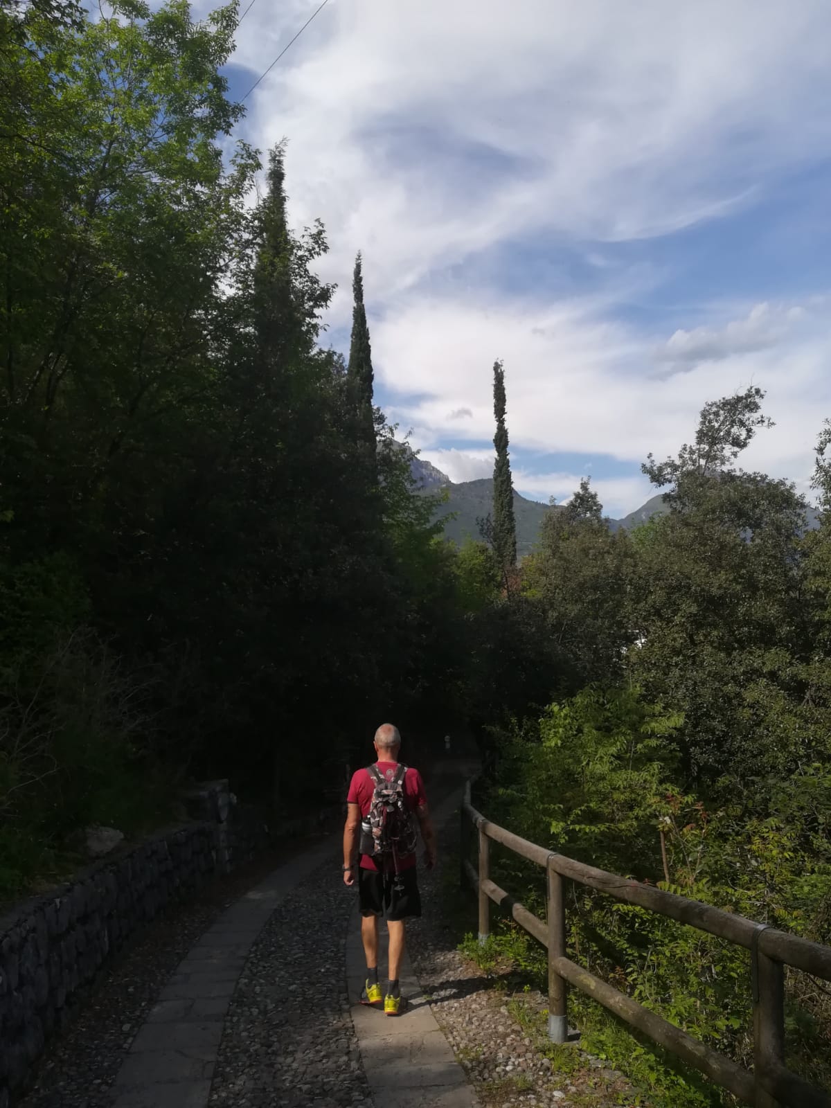 Appena lo imbocchiamo ne rimaniamo affascinati. Ci ritroviamo in una bella e ben tenuta stradina in ciottoli immersa nel verde tipico del lago, con la sua grande varietà di sempreverdi e soprattutto di meravigliosi cipressi, alberi che ci accompagneranno sempre nelle nostre escursioni qui.
