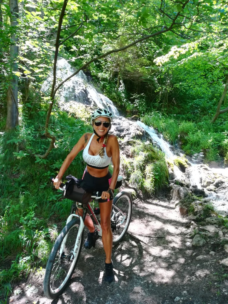 Arrivati ad una galleria, usciamo sulla strada provinciale per pochi metri per poi rituffarci immediatamente sulla ciclabile che qui cambia completamente, immergendosi in una stretta stradina di sassi accompagnata per tutta la lunghezza da un tipico ruscello di montagna e da piccole cascate immerse nel bosco.
