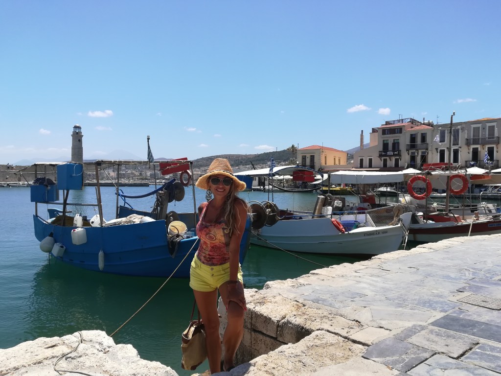 Volendo cambiare il noleggio dell’auto con una moto, rendiamo la macchina al porto come d’accordo con l’agenzia di noleggio e sperimentiamo per la prima volta i mezzi pubblici di Creta. Uscendo dal porto non troviamo nessuno a cui chiedere informazioni, c’è solo un uomo sulla settantina un po’ trasandato e con un dente sì e uno no. Avevamo letto nei forum che non ci dovevamo aspettare molte persone parlanti inglese ma io ci provo lo stesso e …sorpresa!! Mi risponde in un maccheronico ma chiarissimo inglese, spiegandomi benissimo dove si trova la fermata dei bus e perfino il numero dell’autobus che arriva ad Amoudara, la zona dove si trova il nostro l’hotel…thank you very much!