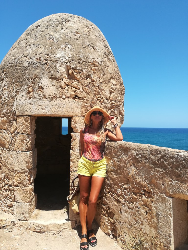 È giunta l’ora di lasciare Chania, della quale manterrò sempre dei bellissimi ricordi, per dirigerci a Heraklion. Facciamo una sosta a Rethymno, che si trova in mezzo tra la città di partenza e quella di arrivo. Durante l’andata avevamo già dato una veloce occhiata ma oggi vogliamo scoprirla al meglio, dedicandole qualche ora. Quella che ci era sembrata una classica città di mare turistica alla moda adriatica, si rivela carinissima. Poco prima del centro storico c’è un grandissimo parcheggio dove troviamo facilmente un posto libero e da lì percorriamo circa 200 metri accompagnati da bei locali che, come in tutte le località di mare, offrono cibo a qualsiasi ora. Arriviamo al centro storico che con la sua imponente fortezza ci piace molto di più della parte più nuova. Ne approfittiamo per visitare la fortezza che è molto ben tenuta e che offre un bel panorama sul mare. All’interno ci sono degli spazi dedicati ai concerti o a eventi pubblici. Di giorno l’effetto si può definire bello ma di sera, con le luci e il mare proprio lì sotto, dev’essere assai coreografico. Peccato non poterlo vedere di persona.