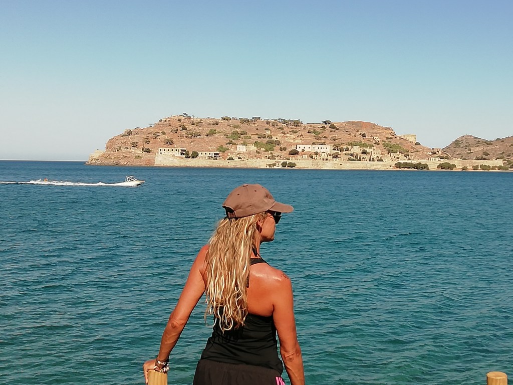 La nostra prossima meta è Spinalonga, una piccola isola situata proprio di fronte a Kalydon al cui centro i veneziani costruirono, verso la fine del 1500, una possente fortificazione atta a controllare il traffico marittimo. Dopo varie traversie, la fortezza divenne un lebbrosario. Ora è disabitata e si può raggiungere in battello da vari porti di Creta. In verità non ci interessa andarci ma solo vederne la maestosità, caratteristica che la rende uno dei poli turistici più famosi di Creta.