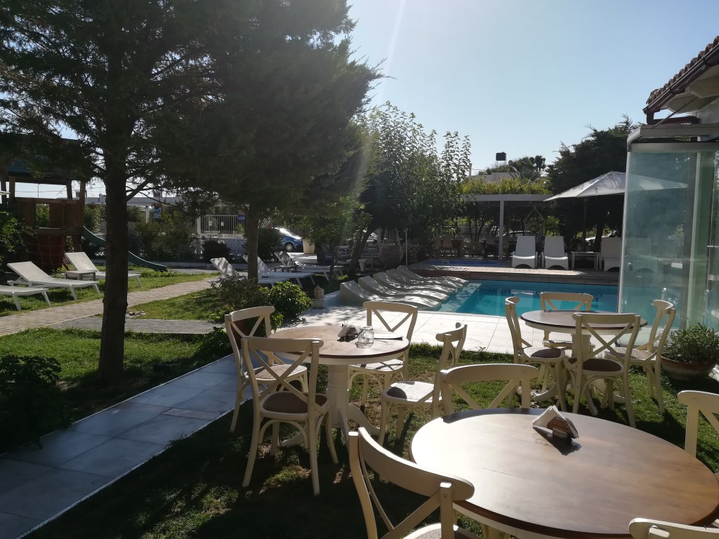 Arriviamo al Georgia hotel nel tardo pomeriggio e ci lasciamo subito entusiasmare dalla camera ampia, dal bel giardino con una piccola piscina e dall’arredamento in legno bianco della terrazza esterna dove ci verranno servite colazione e cena.