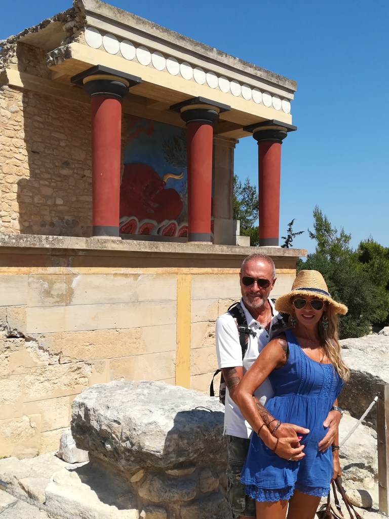 Oggi ci si accultura! A soli 5 km da Heraklion ha sede il palazzo di Knosso, la testimonianza più maestosa della civiltà minoica, la civiltà più antica d’Europa. Ma, al di là della sua importanza storica, ciò che affascina me è l’essere legato alle leggende di Minosse, Dedalo, Icaro e del labirinto dove viveva nascosto il minotauro. Ma proprio mentre siamo in fila per acquistare i biglietti, faccio un’amara scoperta….non esiste un labirinto vero e proprio, è la struttura stessa del palazzo che con la sua superficie di 22.000 mq, i diversi piani e la sua pianta complessa e intricata, lo faceva paragonare ad un labirinto. Già mi immaginavo persa tra le vecchie mura a cielo aperto, in cerca della giusta direzione per trovare una via d’uscita…Pazienza, dimentichiamo la leggenda e rimaniamo coi piedi per terra.