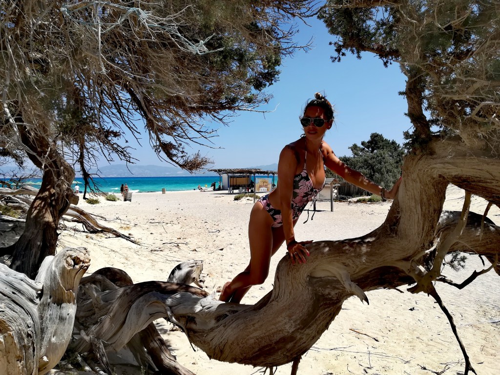 Dopo 40 minuti di traversata (dove se si è fortunati si possono vedere anche i delfini…fortuna che noi non abbiamo…) sbarchiamo su questa piccolissima isola disabitata lunga soli 5 km e larga uno e mezzo che si trova nel mar Libico. Ci accolgono subito dei lettini con ombrelloni in rafia e un piccolo bar. Avendo però letto che la spiaggia più bella, la Golden beach, è dall’altra parte, attraversiamo l’isola passando per una rada foresta di cedri libanesi fino a trovare degli altri lettini con ombrelloni e una lunghissima spiaggia semi deserta. Fa un caldo terrificante, l’aria sembra quella uscita da un phon professionale messo al massimo e la sabbia è così bollente che si fatica a camminare anche con le ciabatte. Il mare è piuttosto mosso e per Miro, che ama il mare piatto, è preferibile tornare indietro, dove l’acqua sembra più calma. Come al solito prendiamo due lettini che poi non useremo e partiamo alla ricerca degli angoli più suggestivi, camminando sopra un mix di sabbia e rocce. Devo ricredermi sulla prima impressione non molto buona perché l’acqua è davvero stupenda, con le infinite sfumature dal verde più chiaro al blu più acceso. Dei tanti turisti che sbarcano, ce ne sono pochissimi che si spingono più in là delle due spiagge attrezzate, senza sapere che si perdono il meglio. Proviamo ad imprimere nelle foto questi fantastici colori, passando tra radi e secchi cedri che riescono a sopravvivere nonostante questo clima rovente e ci tuffiamo a goderci quest’acqua incontaminata.