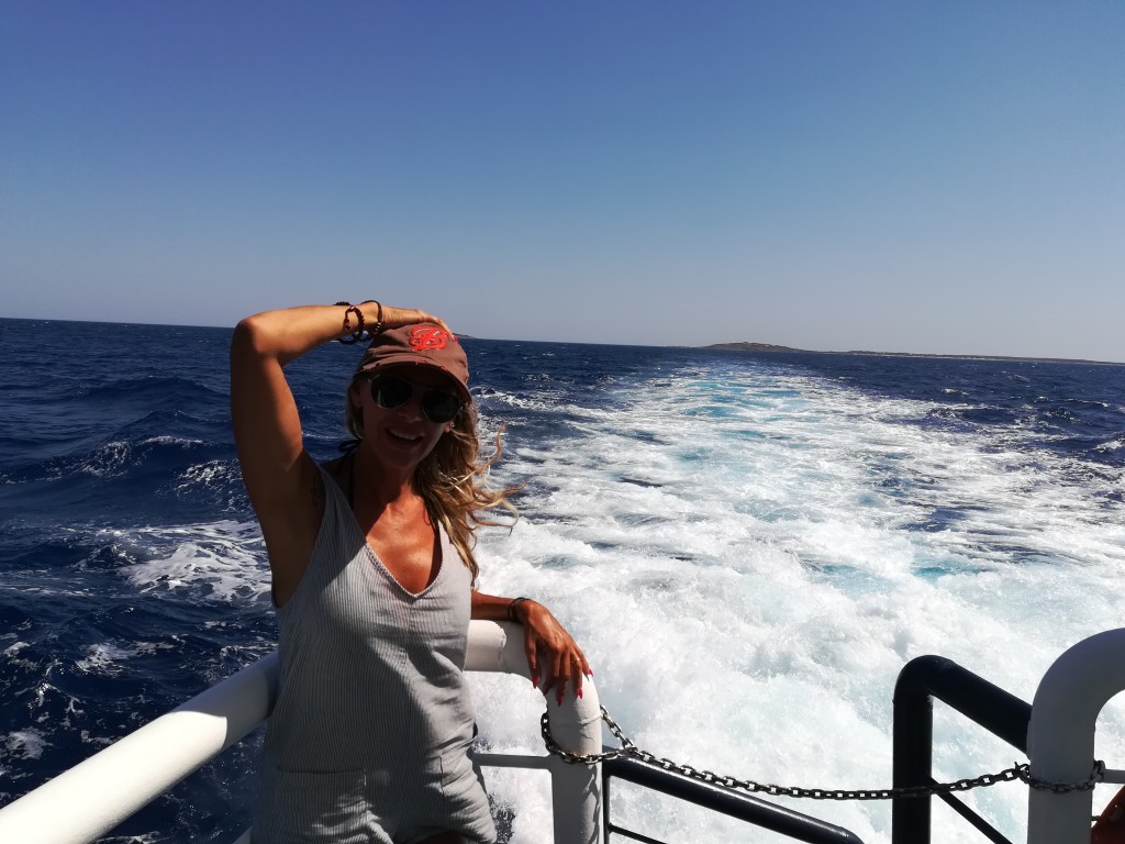 In ogni nostro viaggio c’è sempre una giornata che ci sembra sprecata e oggi sarà proprio una di quelle. Avremmo dovuto ascoltare la cara Lidia che ci consigliava caldamente la spiaggia di Vai, situata nell’estremità a nord-est dell’isola, però la distanza ci sembra troppa e optiamo per l’isola di Chrissi, affascinati anche dalla traversata in barca e dalle recensioni più che positive. Raggiungiamo Ierapietra, una città a circa 100 Km da Heraklion, molto carina e turistica e unico punto d’accesso per Chrissi. Troviamo comodamente un parcheggio auto da dove possiamo anche acquistare il biglietto per la barca. Siamo fortunati perché arriviamo pochi minuti prima delle 10,30, orario della partenza , perciò non dobbiamo aspettare neanche un minuto. Pensavo fosse una meta quasi sconosciuta ma mi devo ricredere immediatamente vista la quantità di gente stipata in battello, quasi si fatica a trovare un posto a sedere.