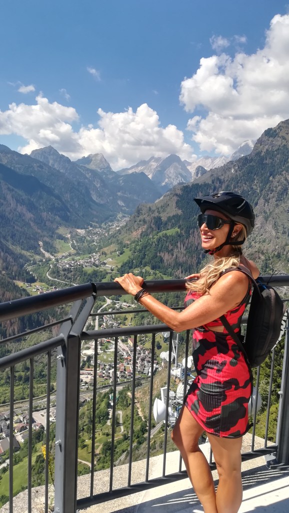 La vista è davvero da punto panoramico: la valle sottostante circondata da quella moltitudine di vette, immerse in un cielo azzurrissimo e innocue nuvole bianche è davvero spettacolare.