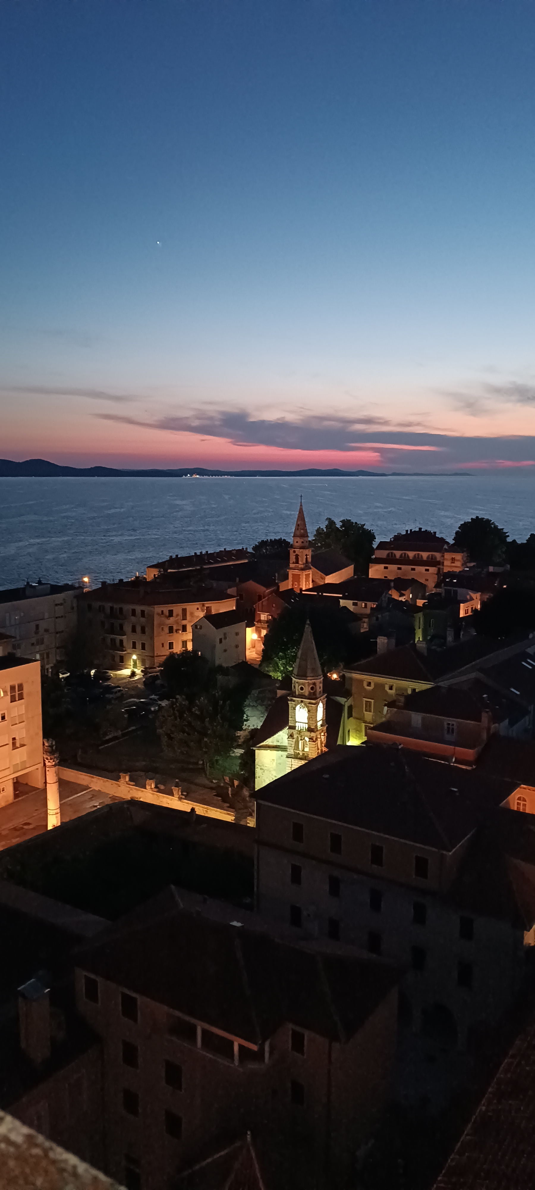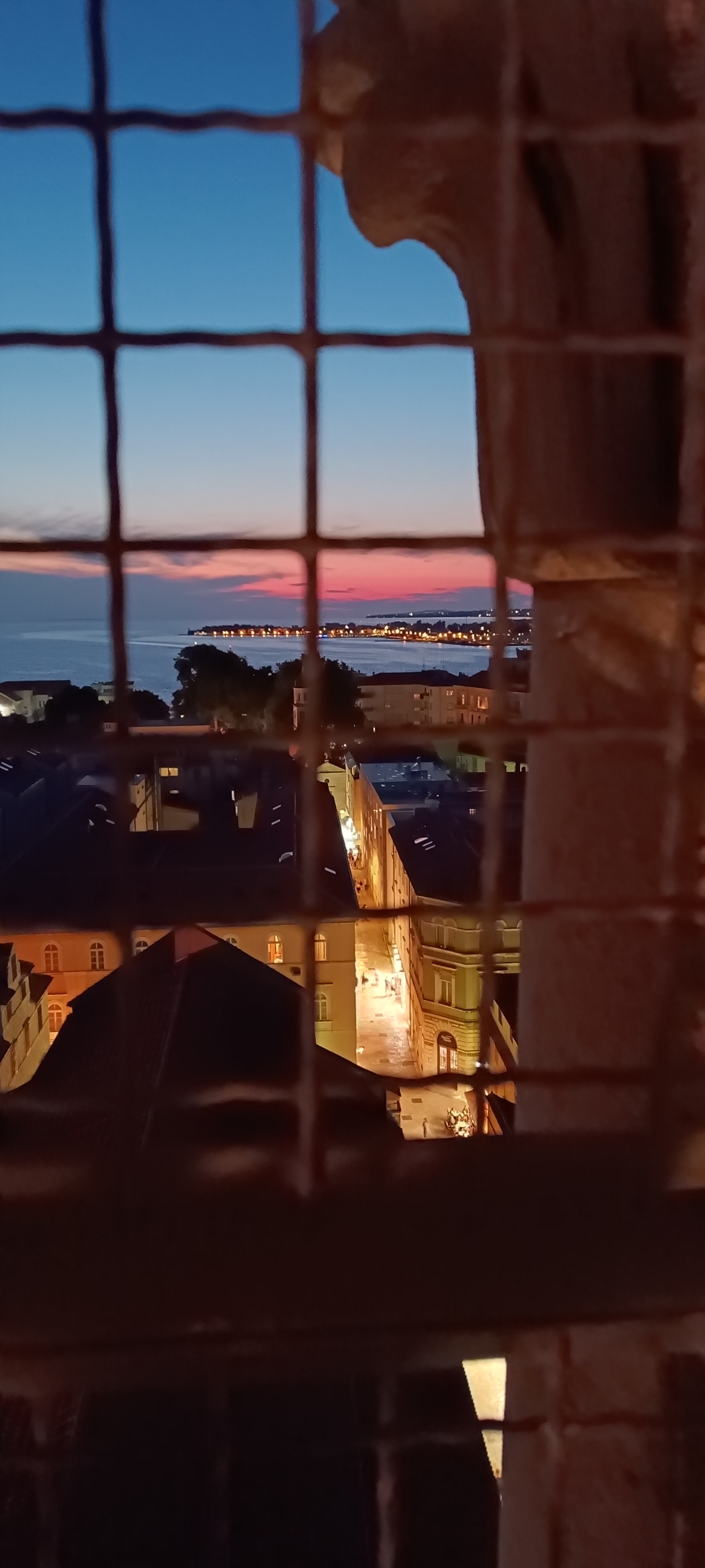 La sera, quando torniamo in centro per la passeggiata con Giotto, è già ripartita. Peccato, ci sarebbe piaciuta vederla alla luce della luna. Per consolarmi mi fiondo sui 180 scalini della torre della cattedrale che offre dall’alto una lucente visione di Zara brulicante di turisti che sembrano formiche operose a caccia di buoni ristoranti o di un buon gelato in una delle numerosissime gelaterie del centro.