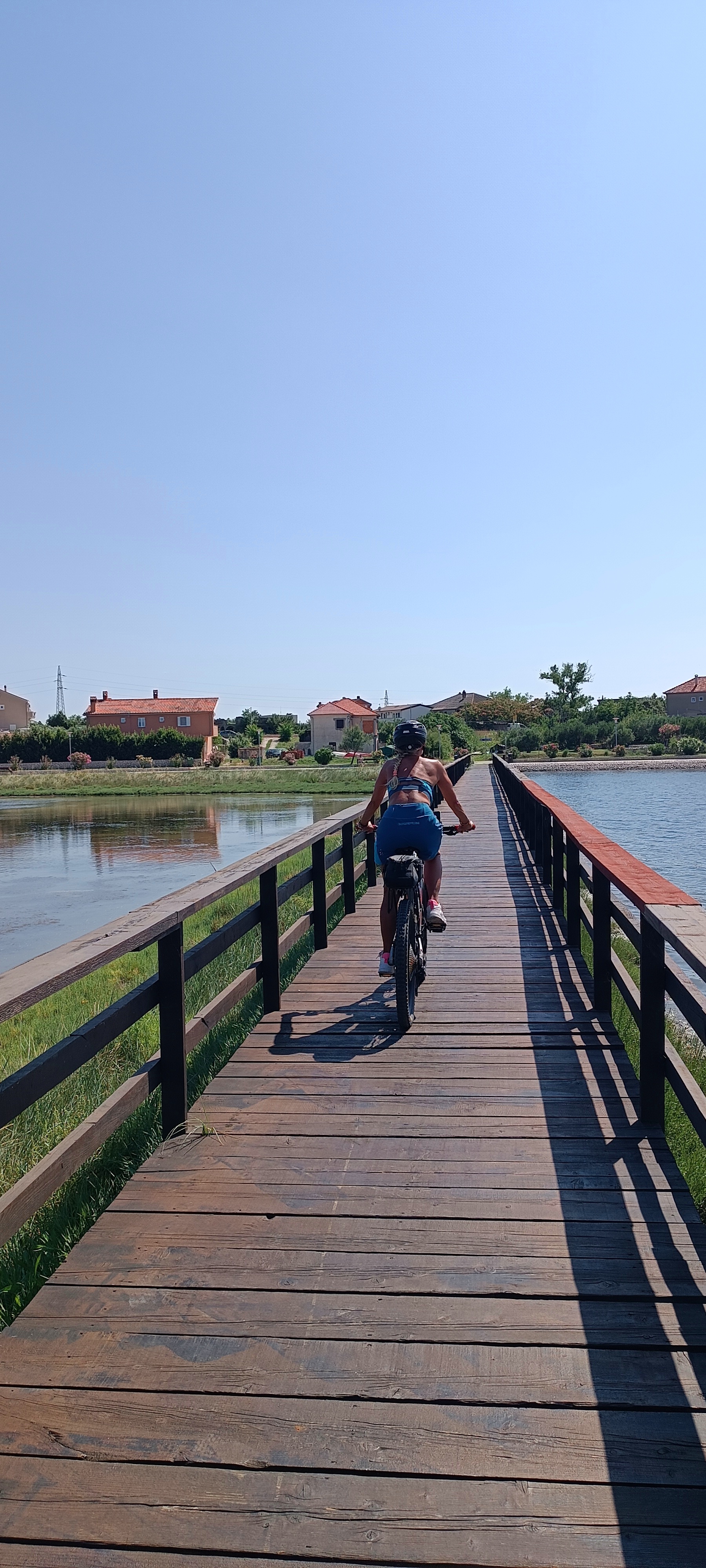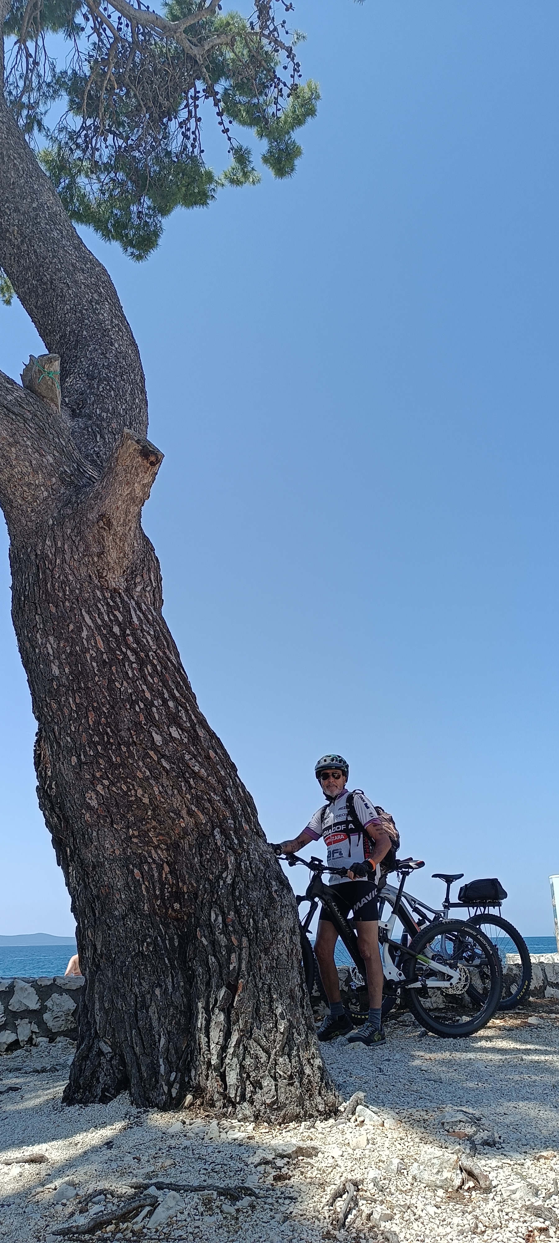 È mattina, il sole splende e le nostre bici sono lì in attesa di girare sul suolo croato. Su consiglio del nostro padrone di casa, andiamo a Nona, a circa 20 km di distanza dove sembrano esserci delle belle spiagge e un’acqua cristallina. Riusciamo a seguire quasi sempre la costa e percorriamo anche un bel pezzo di ciclabile che corre lungo la strada principale, poco trafficata e sempre accompagnati da estese pinete e locali tipici dove, già di prima mattina, polpose porchette girano sullo spiedo.