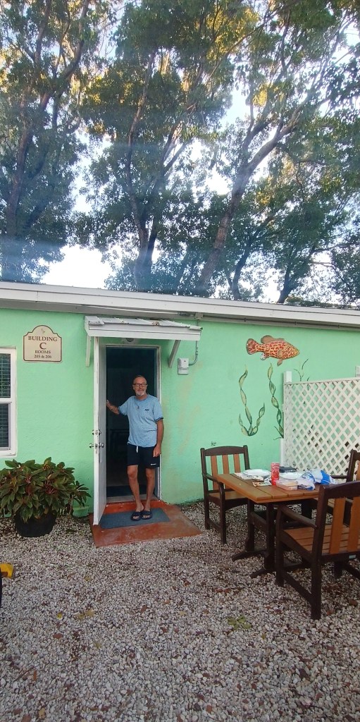 Troviamo subito il nostro piccolo villaggio, il Pellican Key Largo cottages, un insieme di bassi cottage colorati dove ci sentiamo già a nostro agio. Oltre alla comodità di poter parcheggiare davanti all’appartamento, abbiamo una camera grande dotata di ogni comfort e un piccolo giardino esterno dove ci vediamo già beatamente seduti a goderci la colazione.